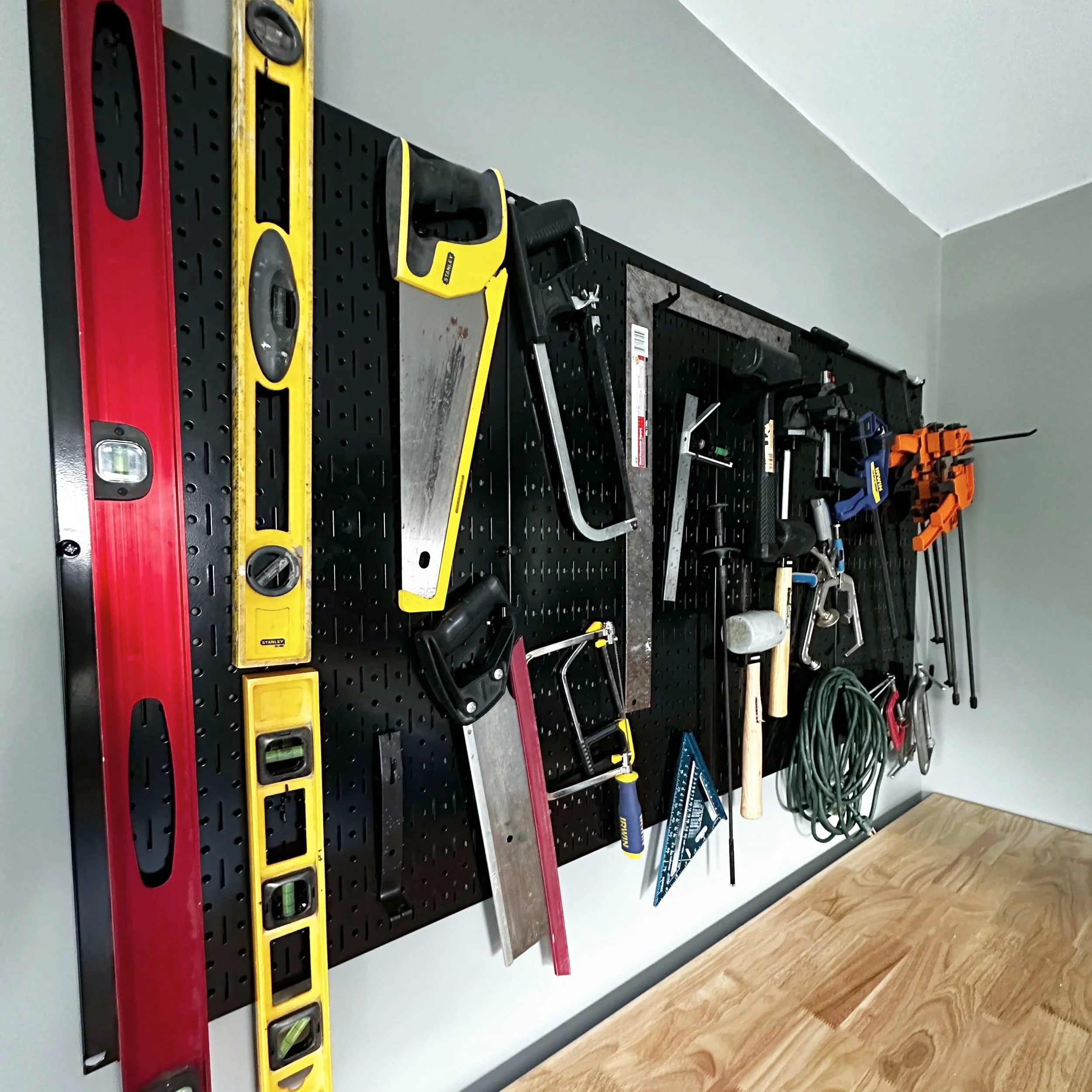 In the garage, we installed vertical hooks to lift gear off the floor, opening up valuable shelf space. In the workshop, we added pegboards to organize tools - creating a feature wall that’s both functional and visually clean.